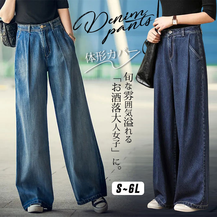 心地よい 深ゆるまたサルエルデニムパンツ ボーイフレンドデニム 速攻美脚 カジュアル 軽い穿き心地 ゆるいシルエットラインが抜け感のあるカジュアルさを演出