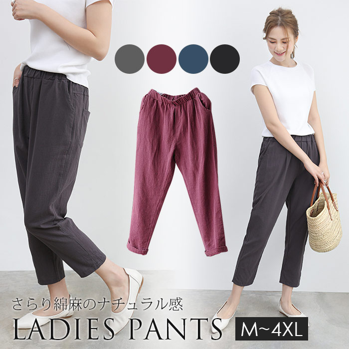 涼しい 薄くて柔らかな麻混素材で穿き心地よい おしゃれ 人気 母 ママ 敬老の日 プレゼント きれいめ 40代 30代 20代 春夏秋に対応 心地よい 快適 体型カバー 大きいサイズ