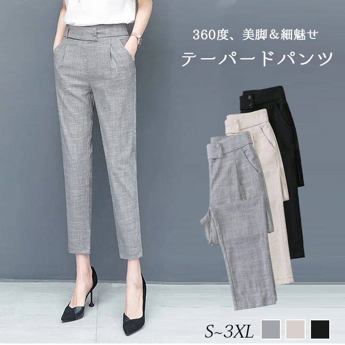 レディース パンツ 春秋 八分丈 九分丈 ボトムス 美脚 無地 スーツパンツ ベーシック 大きいサイズ 体型カバー カジュアル テーパードパンツ 着痩せ オフィス ブラック アイボリー -0