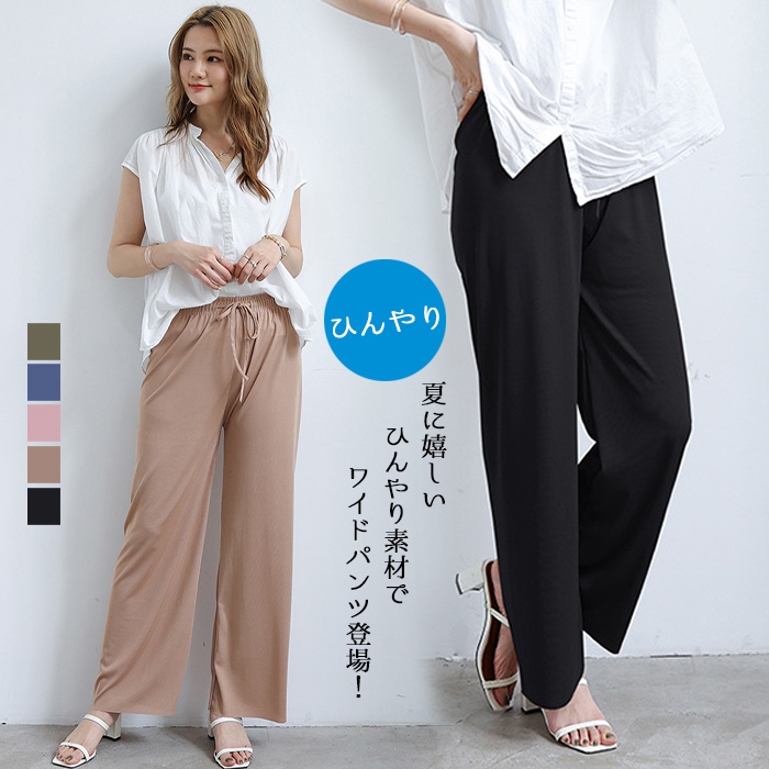 涼しい 新カラータイプ登場 春 夏 ワイドパンツ 体型カバー 縦ライン 高見え おしゃれ かわいい 伸縮性 上着 吸汗 速乾 弾力 快適 通気性 さらてろ プレゼント