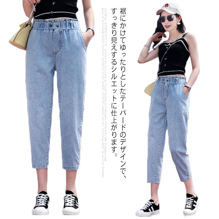 ボトム ウエストゴム ゆったり 体型カバー 小さいサイズ 春 夏 秋 アンクルパンツ デニム パンツ シーパン