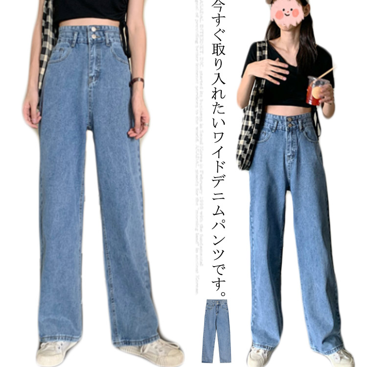 パンツ デニムパンツ レディース ワイドパンツ ワイド 大きいサイズ ストレート ズボン ゆったり ハイウエスト 春 夏 秋 小さいサイズ ジーンズ ジーパン ボトム 体型カバー