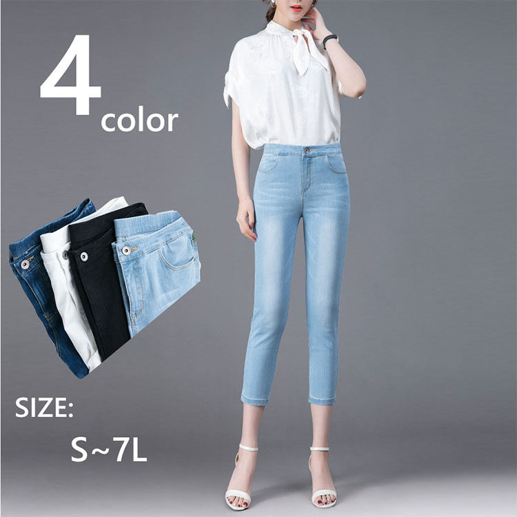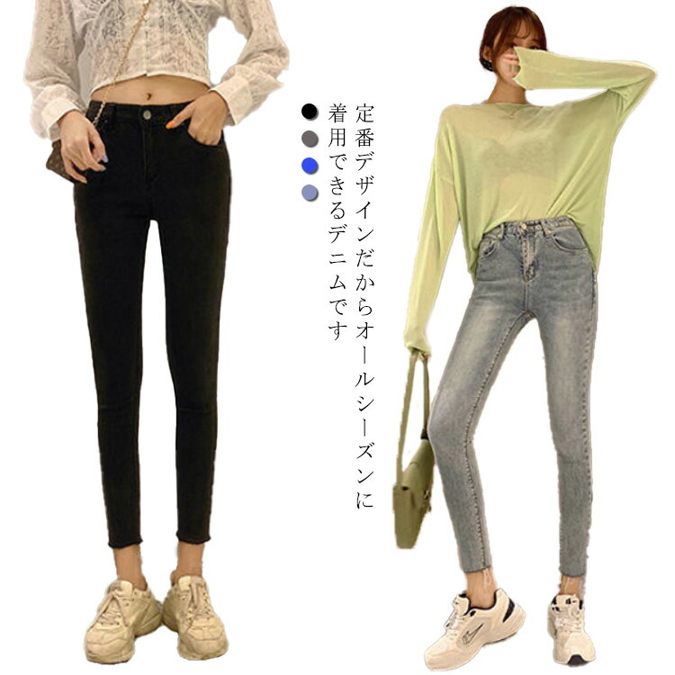 スキニー 着痩せ 美脚 お洒落 カジュアル 春秋 大きいサイズ 普段着 ボトムス ジーンズ ジーパン ストレッチ 9分丈