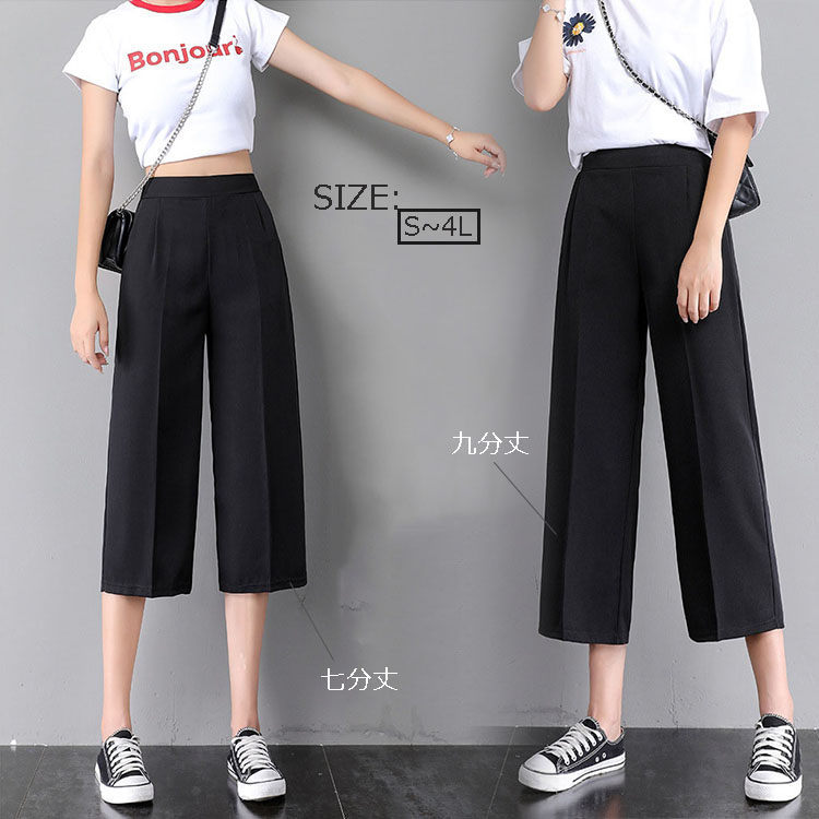 レディース パンツ 春 夏 ガウチョパンツ 七分丈 九分丈 ボトムス 美脚 無地 大きいサイズ ベーシック 体型カバー カジュアル ウエストゴム 着痩せ オフィス ワイドパンツ ブラック -