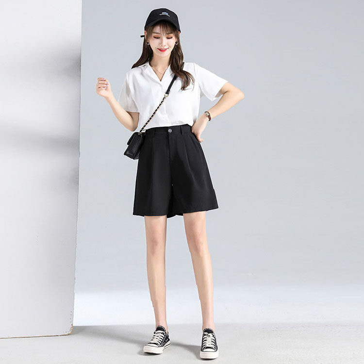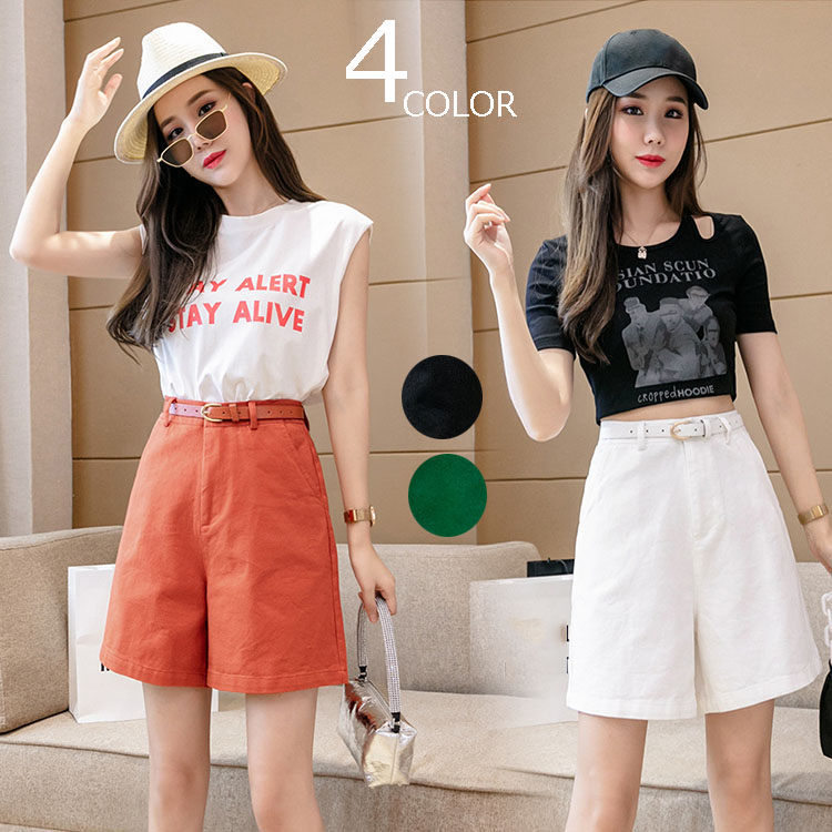 ショパン パンツ 五分丈 ボトムス ワイドパンツ レディース ゆったり ベーシック 体型カバー カジュアル 着痩せ ハイウェスト ブラック ホワイト オレンジ グリーン 美脚 無地 大きいサイズ