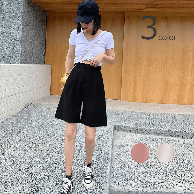 レディース パンツ 夏 五分丈 ボトムスワイドパンツ 大きいサイズ ゆったり ベーシック 体型カバー カジュアル ウエストゴム オフィス ハイウェスト 着痩せ 美脚 無地 -087