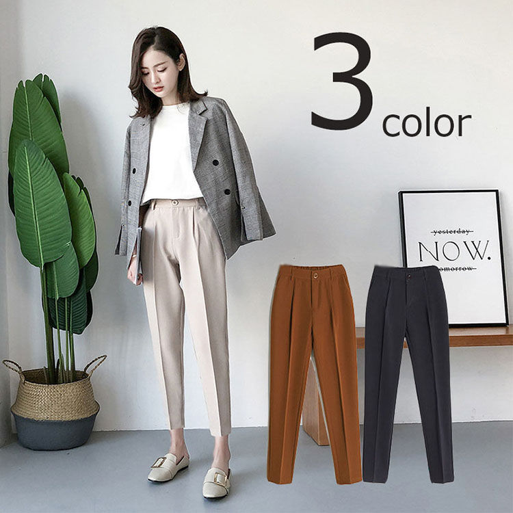 レディース パンツ 春 秋 九分丈 スーツパンツ ズボン ボトムス 美脚 無地 大きいサイズ ベーシック 体型カバー カジュアル ジョガーパンツ ブラック キャメル ベージュ エレガント -054