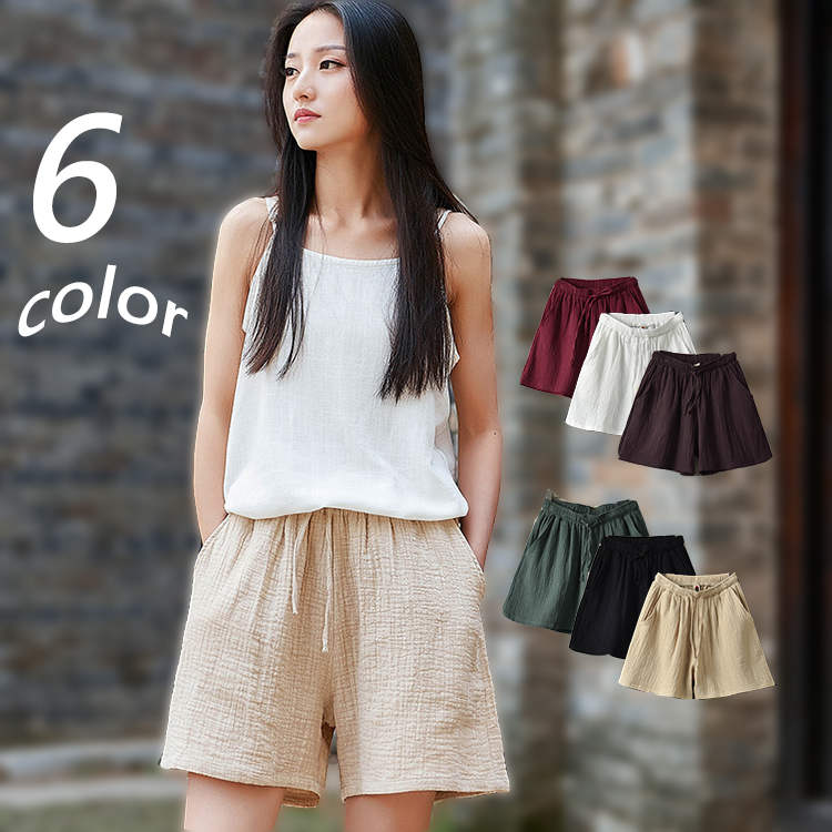 ハーフパンツ スポーツパンツ レディース 優雅 ウエストゴム パンツ 美尻 お出かけ ショートパンツ おしゃれ リネン 美脚