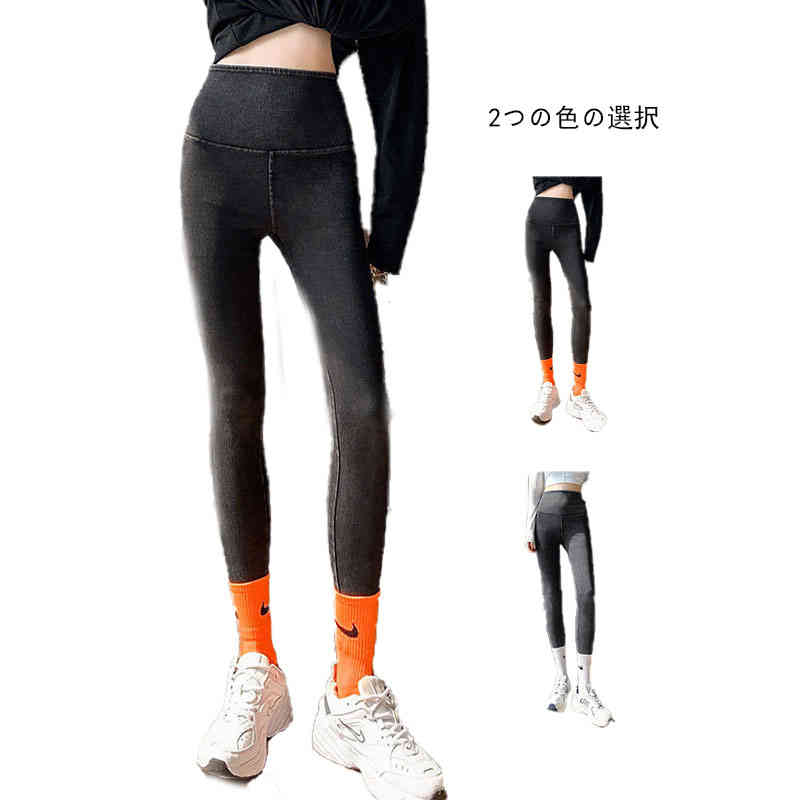 ウエストゴム デニムパンツ 着痩せ ヒップアップ ボトムス ハイウエスト アウター インナーウエア デニム レギンス レギパン パンツ