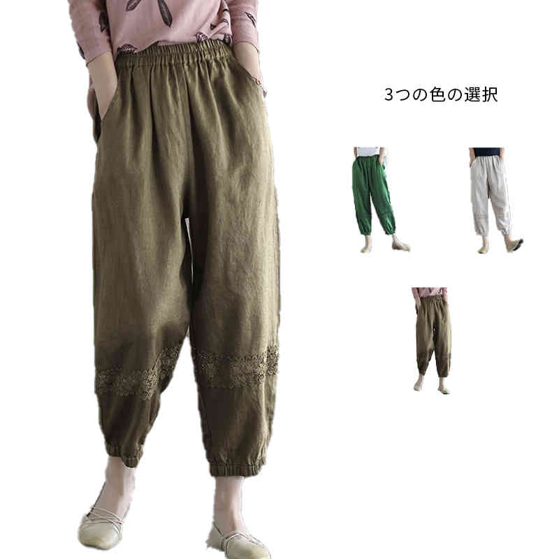 ズボン ロングパンツ リネンパンツ ボトムス 大きいサイズ サルエル 春夏秋 カジュアルパンツ ゆったり 亜麻 涼しい レディース