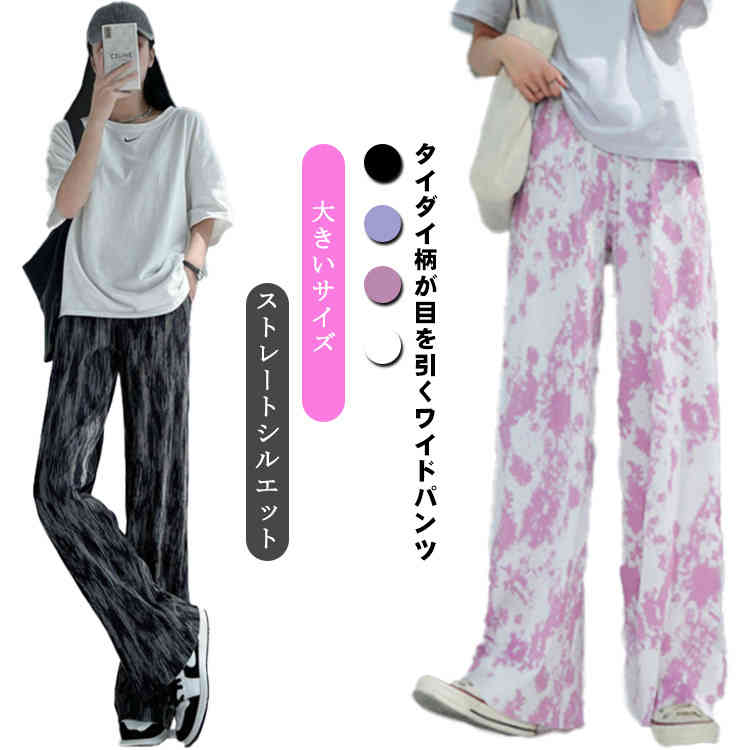 ワイドパンツ 春 夏 レディース タイダイ柄 ストレートパンツ 脚長 細見せレディースファッション ボトムス パンツ