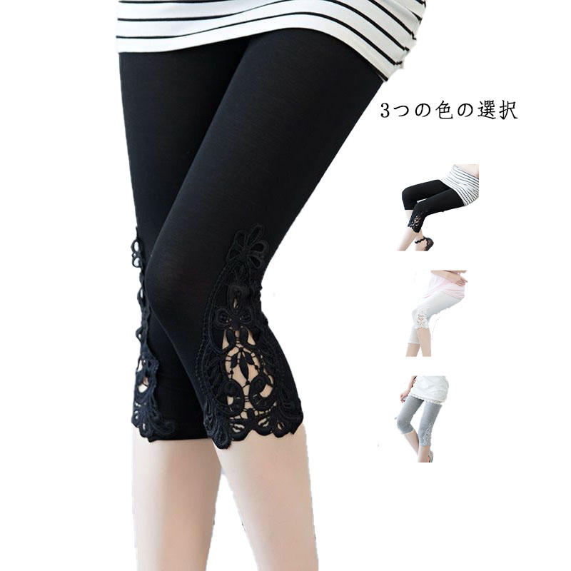 裾レース ストレッチ スパッツ パンツ 刺繍 レギンス 7分丈 レギパン レギンス レース レギパン 裾レース パギンス