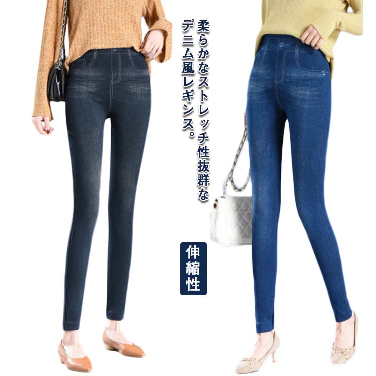デニム風 ストレッチ デニム風 レディース レギパン 美脚 レギンスパンツ スパッツ 2色 秋 デニンス スキニーパンツ トロンプルイユ 春 夏 綿 伸縮性 ボトムス コットン かわいい おしゃれ