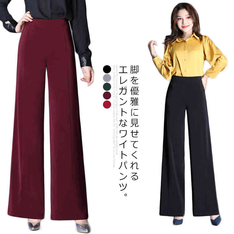 ロングパンツ パンツドレス ワイドパンツ ハイウエスト フレアパンツレディースファッション ボトムス パンツ