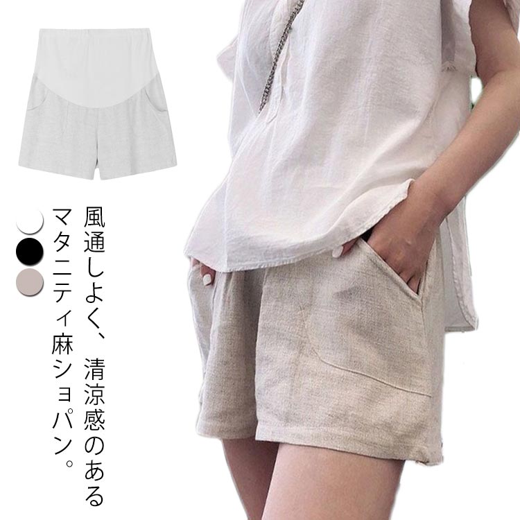 妊娠服 綿麻ショートパンツ 薄くて涼しい♪ マタニティ ショートパンツ マタニティ ボトムス ポケット付き 短パン 3分丈 短パン レディース