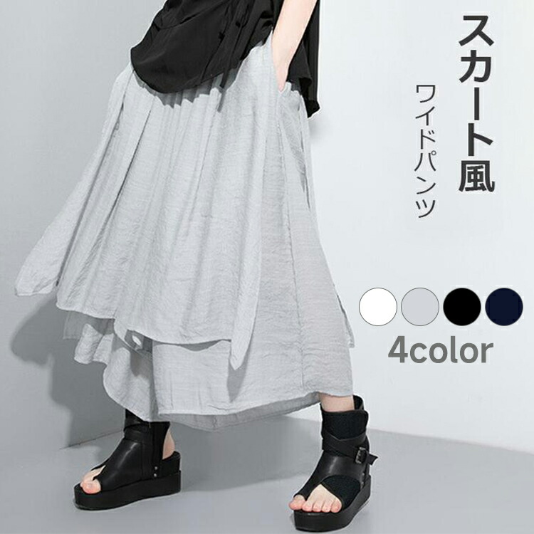 ロング 無地 ゆったり ワイド プリーツ ラップパンツ カフェパンツ スカート風 レイヤード 重ね着風 プリーツパンツ モード 大きいサイズ きれいめ 個性派 低身長 高身長 長ズボン