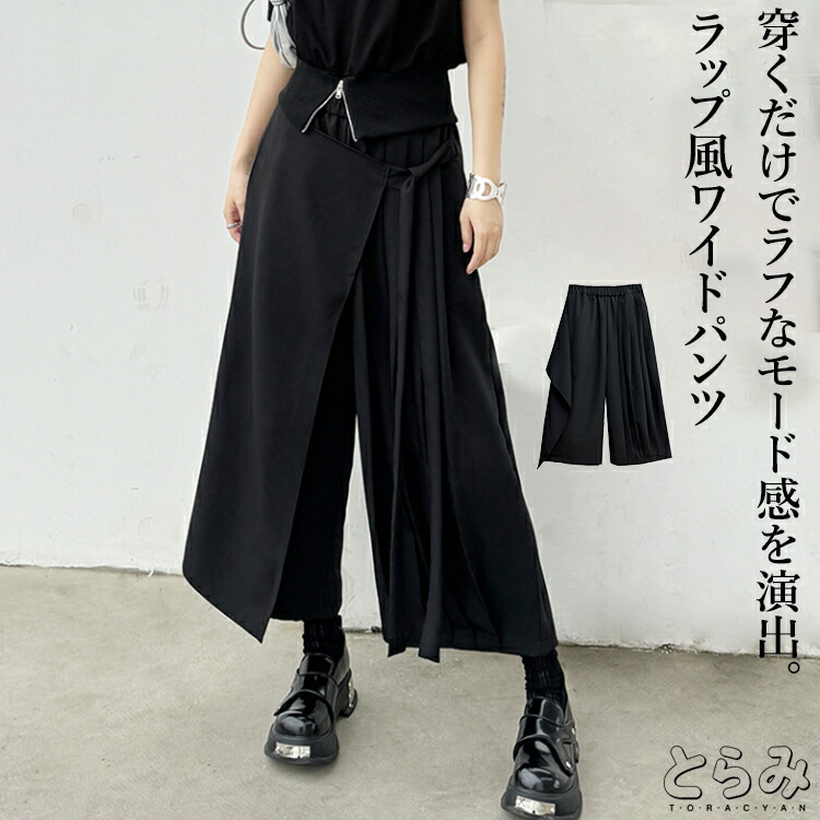 袴パンツ ワイドパンツ レディース スラブパンツ ワイドパンツ ガウチョ アシンメトリー ゆるひら 春 夏 9分丈 袴パンツ 変形 ダンスパンツ ドレープ モード系 イージーパンツ ボトムス スカンツ