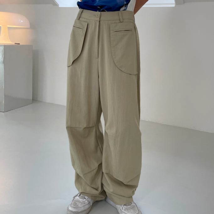 カジュアル ボトムス ロング丈 ワイド パンツ ポケット ボリューム ドレープモップ ハイウエスト ストリート かわいい 大人可愛い きれいめ シンプル カジュアル 大人 上品 おしゃれ