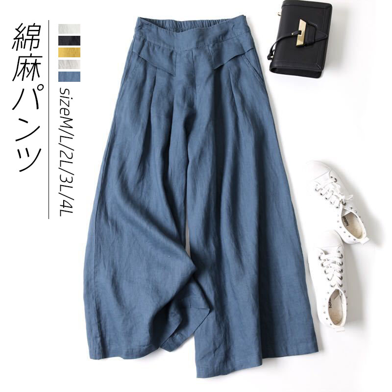 パンツ ワイドパンツ ボトムス スカーチョ ガウチョ スカンツ レディース 無地 リネン ガウチョパンツ 大きいサイズ ロングパンツ ゆったり 体型カバー 綿麻 コットンリネン ロングパンツ カジュア