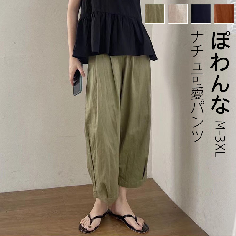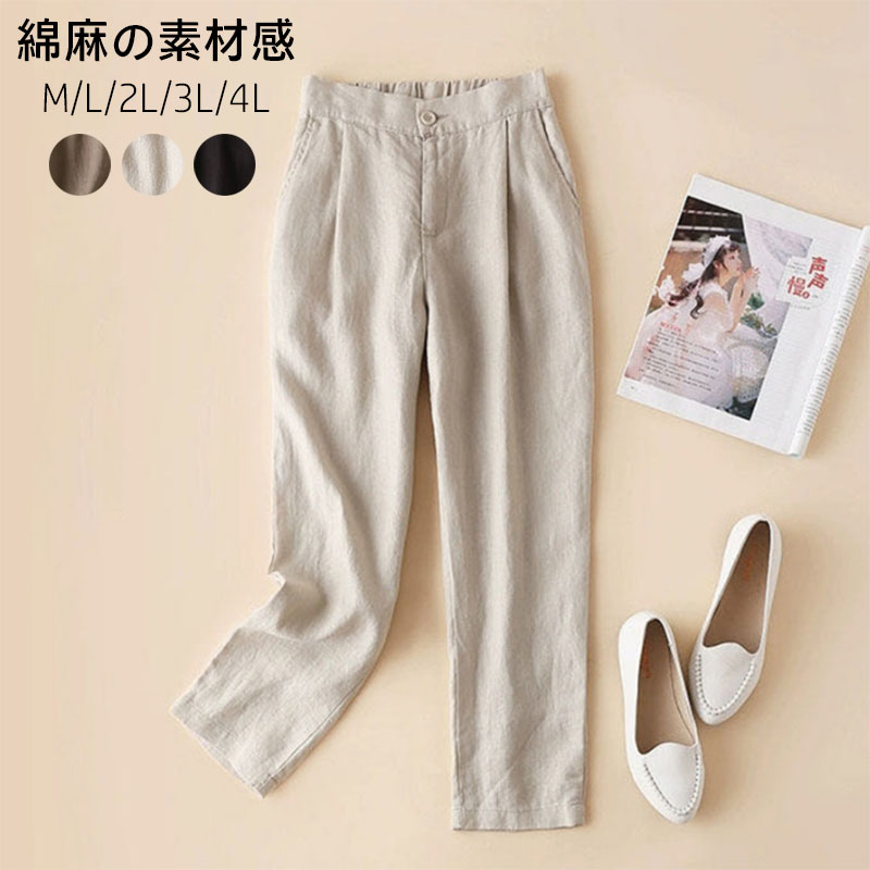リラックスパンツ パンツ レディース サルエルパンツ 九分丈 ゆったり リラックスパンツ 綿麻 リネン ナチュラル テーパード コットンパンツ コットンリネン 通気性 おしゃれ 大人可愛い ナチュラル