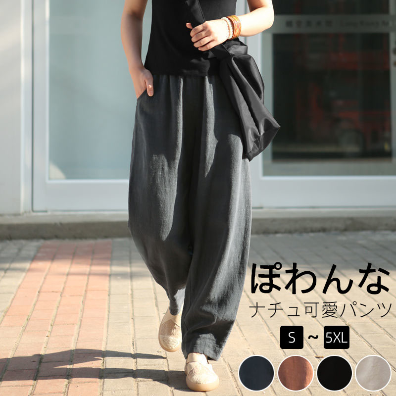 パンツ ハロンパンツ 裾ゴム ウエストゴム ゆったり ワイドパンツ 無地 快適 大きいサイズ 部屋着 リネンパンツ 麻パンツ カジュアル ストリート系 綿麻 ボトムス ファッション