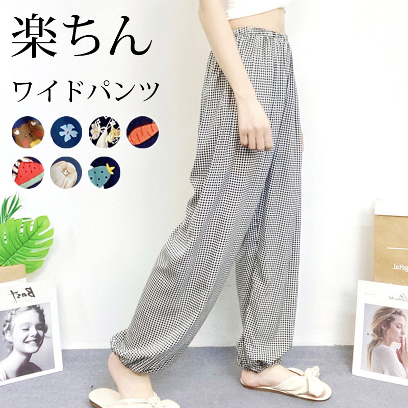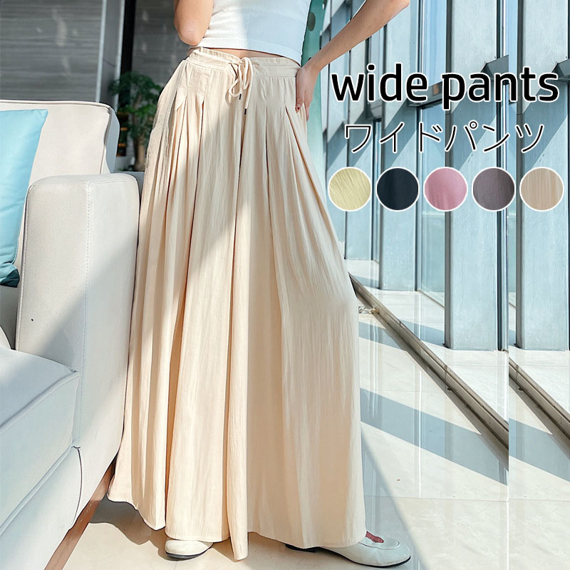 ワイドパンツ レディース接触冷感 ゴムワイドパンツガウチョパンツ動きやすい 涼しいロング丈コットン リラックスボトムス体型カバー 無地 ナチュラル おしゃれ 全5色