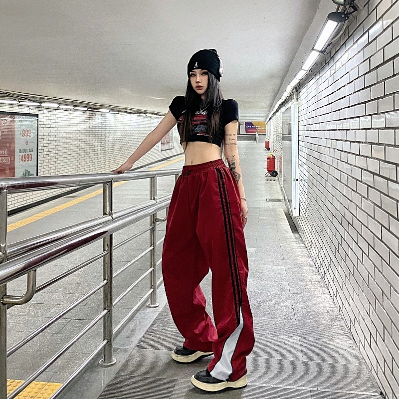 ロゴジャージ2色ズボンパンツボトムスゴムロングハイウエストジョガーパンツストレート総柄ポケットワイド太い大きいサイズビッグダンス衣装ヒップホップレディースメンズガールズストリート奇抜派手個
