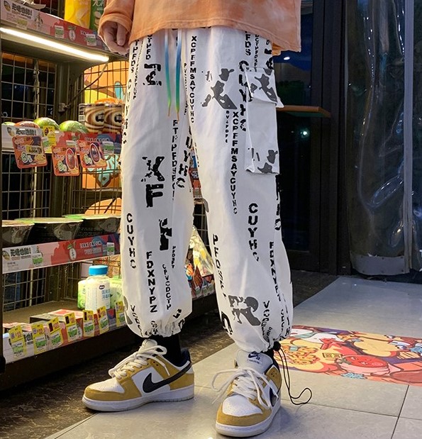 超目玉アイテム ズボン ファスナーで2WAYに使える 原宿系ファッション 韓国風 ダンス衣装 HIPHOP 個性的 奇抜 かわいい 青文字系 ボトムス 無地 シンプル ゴム ジャージ ヒップホップHI