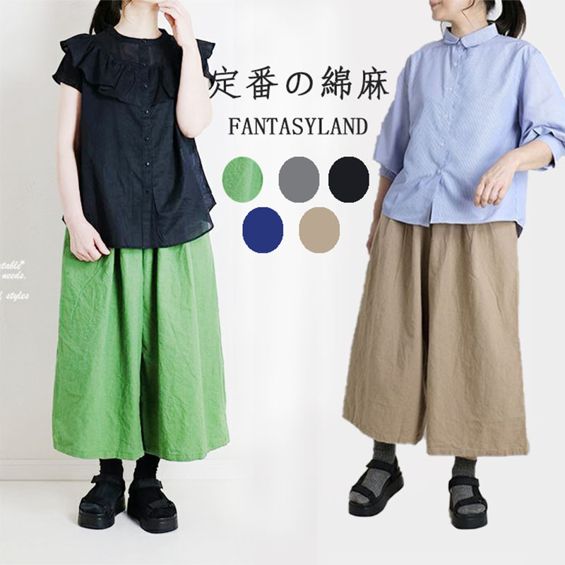 リネン パンツ ガウチョパンツ ガウチョ 七分丈 ワイドパンツ レディース 麻混 涼しい ハイウェスト レディースファッション ウェストゴム ウェスト紐 体型カバー レディースファッション パンツコー
