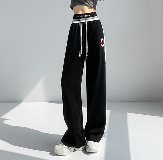 ロゴパンツ2色ズボンボトムスジャージスウェット下ゴムジョガーパンツ黒ブラックグレーシンプルハイウエスト大きい太いワイドビッグゆったりダンス衣装ヒップホップHIPHOPレディースメンズガールズストリート