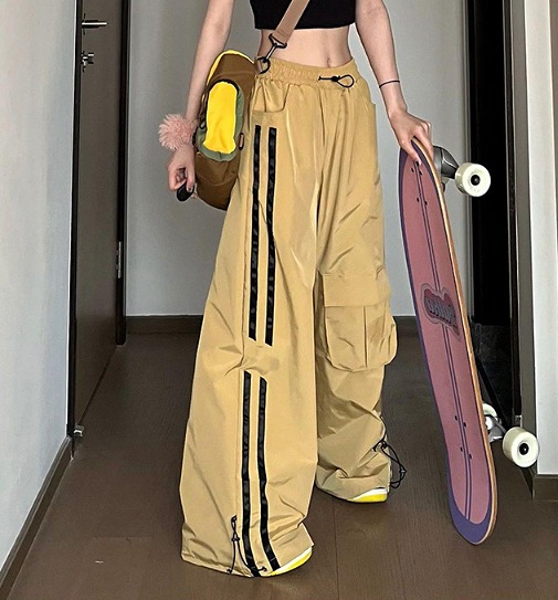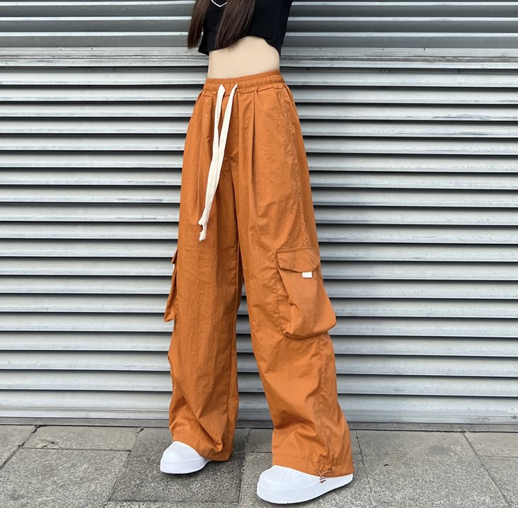 シンプルオレンジパンツズボンボトムスジャージゴムハイウエストロングストレートワイド太い大きいサイズゆったりだぼだぼジョガーパンツカーゴパンツダンス衣装ヒップホップHIPHOPレディースメンズガールズ無