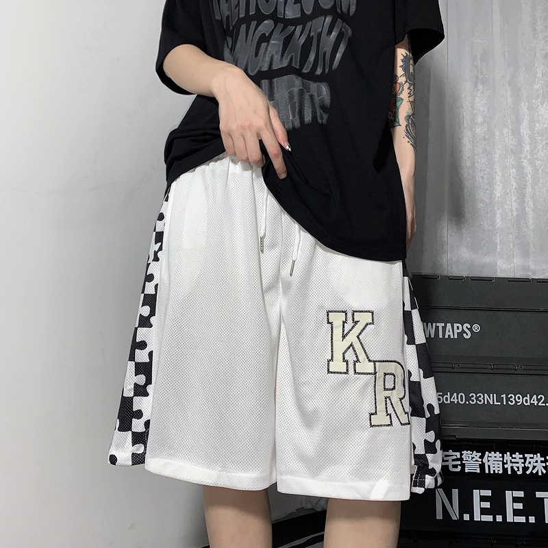 全2色 ショート ハーフパンツ ズボン 切り替え バイカラー 配色 体型カバー 大きいサイズあり 原宿系ファッション 韓国風 ダンス 衣装 ダンサー ヒップホップ 個性 奇抜 かわいい