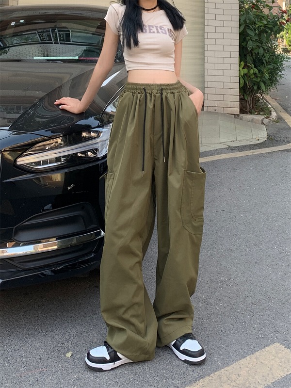 全2色 カーゴパンツ ミリタリーパンツ ジョガー ズボン ウエストゴム 切り替え 体型カバー 無地 ペアお揃い カップル ペアルック 大きいサイズあり 原宿系ファッション 韓国風 ダンス 衣装 ダンサ