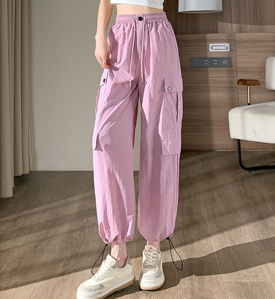 全2色 パンツ ズボン 切り替え スリム ウエストゴム 無地 原宿系ファッション 韓国風 ダンス衣装 カワ 個性 奇抜 かわいい 青文字系 ボトムス レディース 女