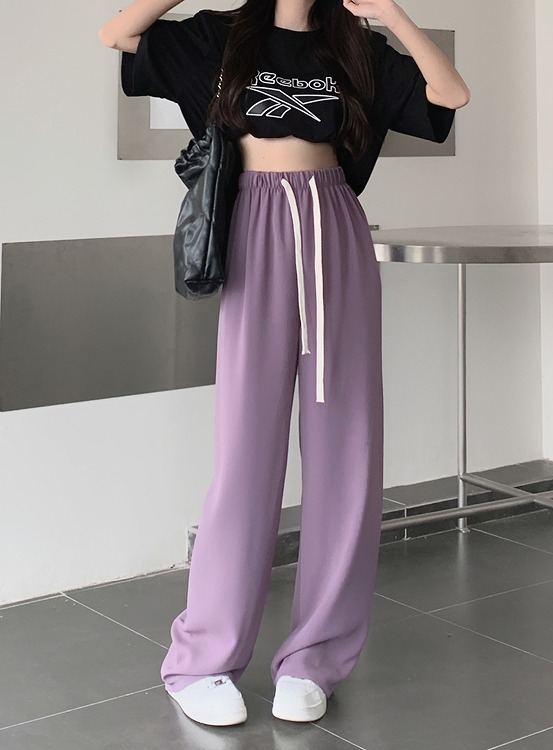 全2色 パンツ ズボン ハイウエスト ウエストゴム 切り替え 体型カバー カットソー 無地 原宿系ファッション 韓国風 ダンス衣装 カワ 個性 奇抜 かわいい 青文字系 ボトムス レディース
