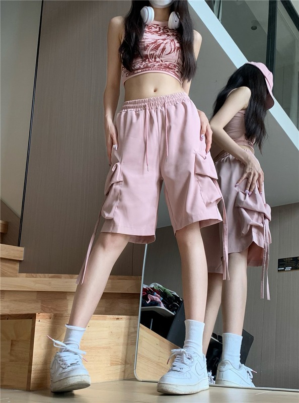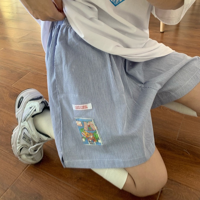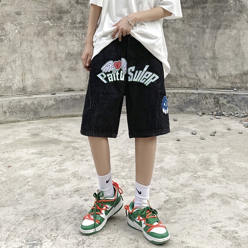 ショート ハーフパンツ ズボン 切り替え 体型カバー デニム 大きいサイズあり 原宿系ファッション 韓国風 ダンス 衣装 ダンサー ヒップホップ 個性 奇抜 かわいい 青文字系 ボトムス