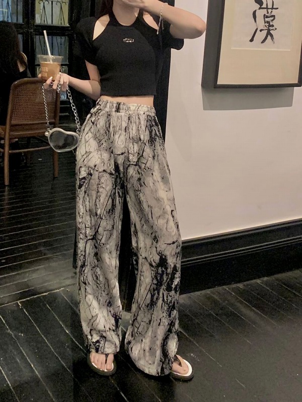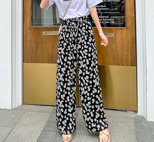 パンツ ズボン 切り替え バイカラー 配色 体型カバー 花柄 フラワー 大きいサイズあり 原宿系ファッション 韓国風 ダンス 衣装 ダンサー ヒップホップ HIPHOP 個性 奇抜 かわいい 青文字系