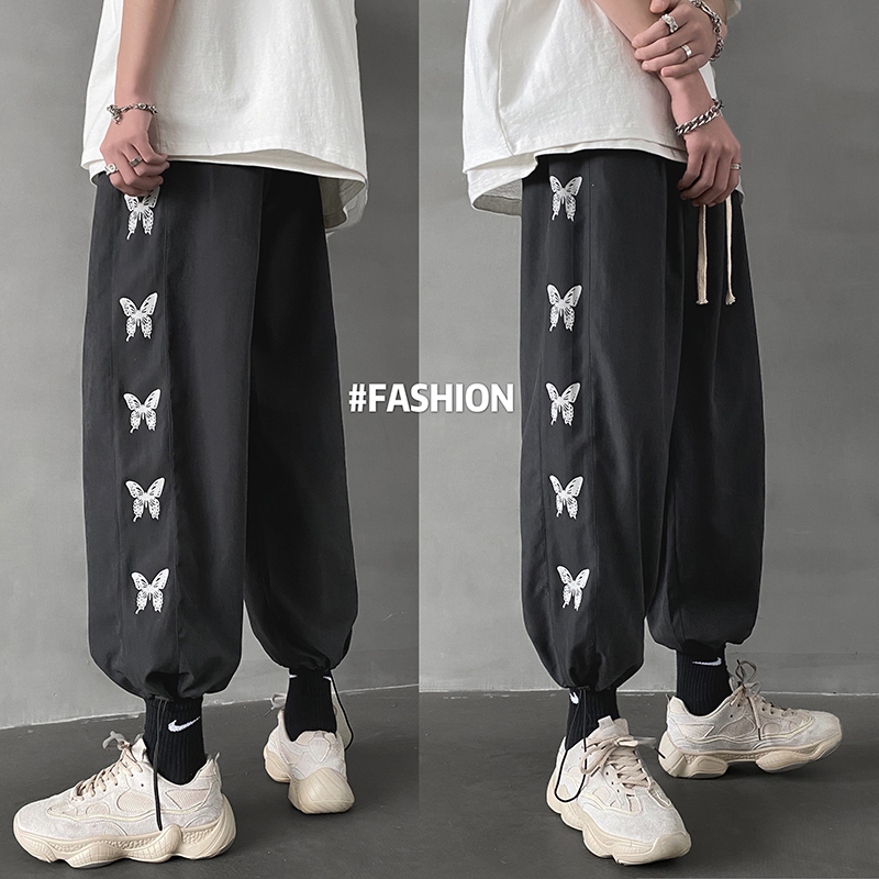 ちょうちょ蝶刺繍プリントパンツボトムスジャージスウェットスエットズボンロング長ズボン黒ブラックレディースメンズキッズダンス衣装ヒップホップHIPHOPゴムハイウエストジョガーパンツ絞り奇抜派手ストリー