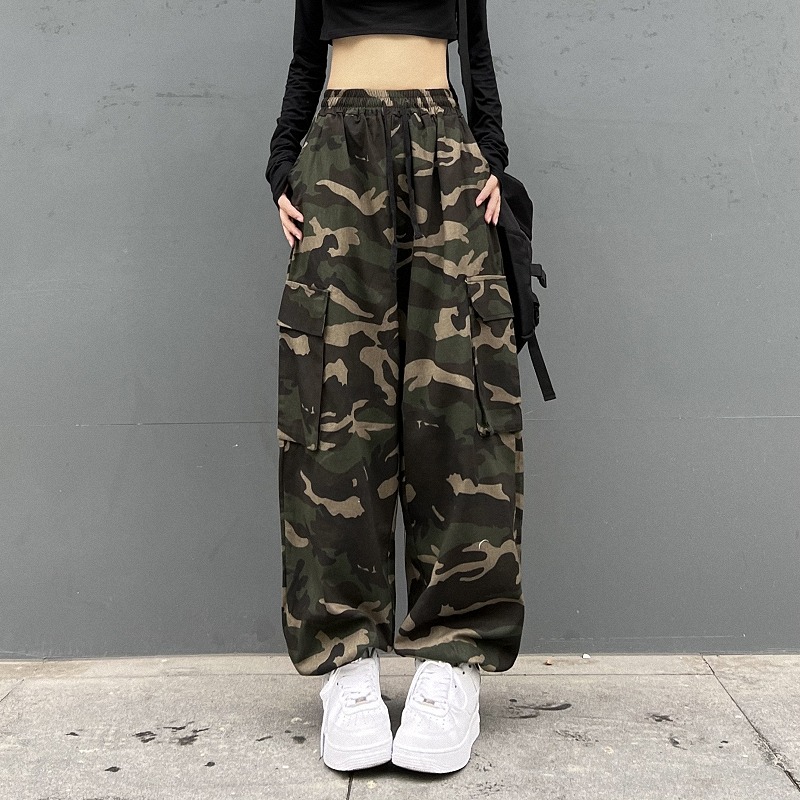 パンツ ズボン 切り替え バイカラー 配色 体型カバー カモフラ 迷彩 ミリタリー ヴィンテージ風 レトロ調 ヒップホップ 原宿系ファッション 韓国風 ダンス衣装 カワ 個性 奇