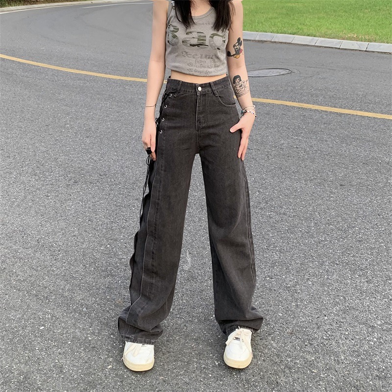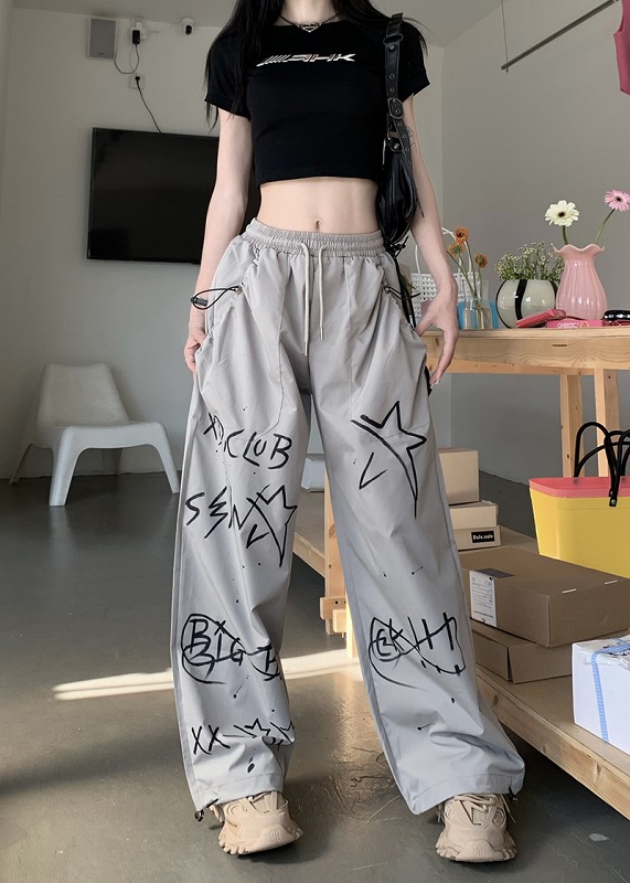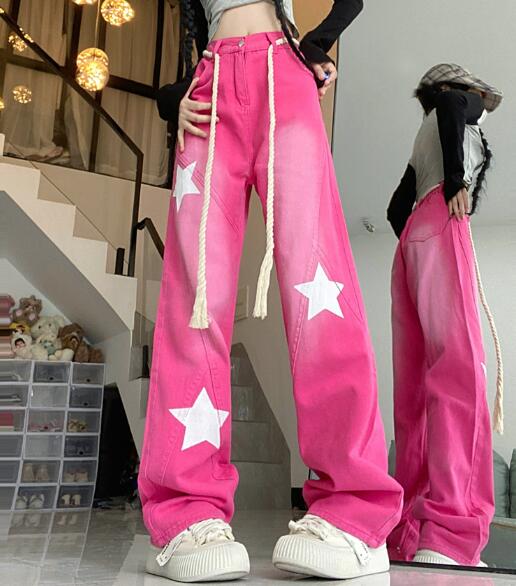 ♪~展開♪星柄デニムズボンボトムスパンツジーンズジーパンストレートロングシンプルピンクピンクホワイトダンス衣装ヒップホップレディースガールズストリート奇抜派手韓国ビッグ大きいサイズ