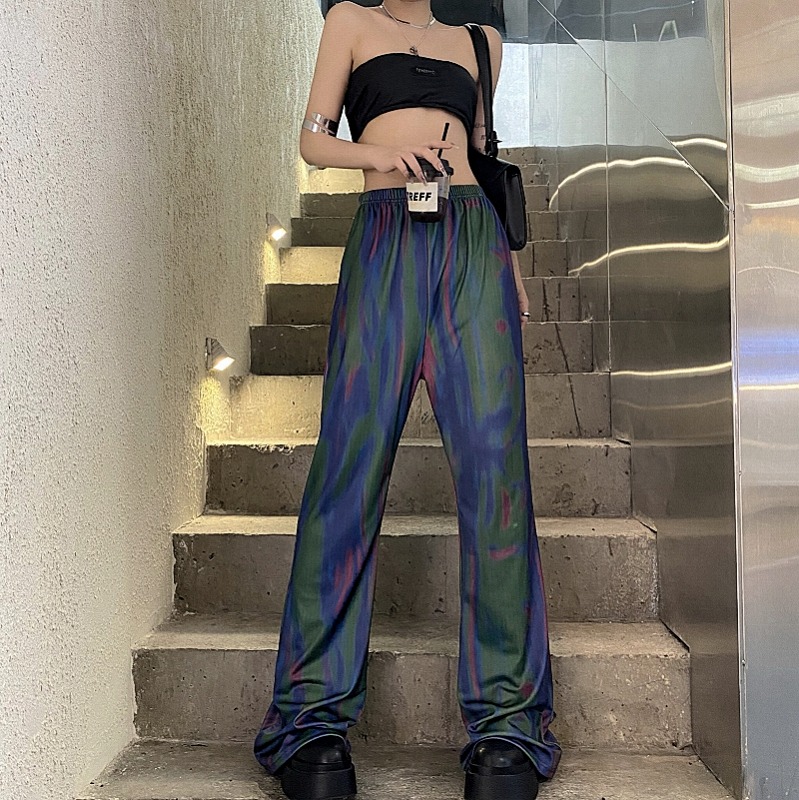 ダイダイ マーブルハイウエストズボンパンツボトムスロング柄パンツスリムダンス衣装ヒップホップレディースガールズ韓国かっこいい可愛いおしゃれ長ズボン派手奇抜個性的