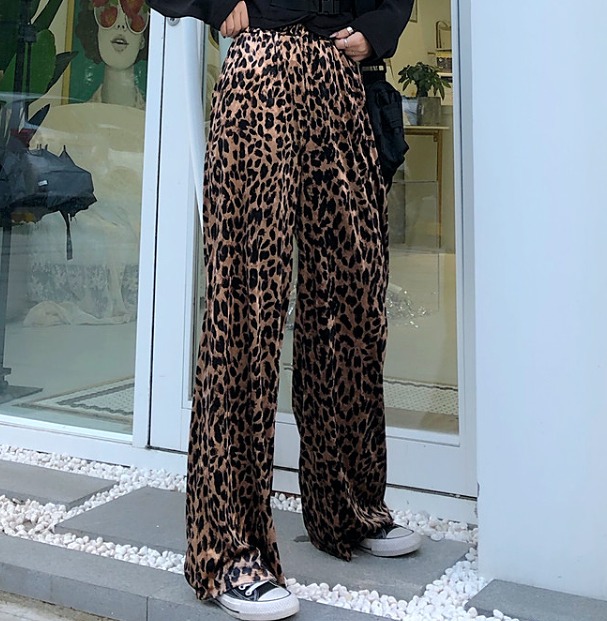 全2色 パンツ ズボン 切り替え バイカラー 配色 体型カバー レオパード柄 ヒョウ柄 ヴィンテージ風 レトロ調 原宿系ファッション 韓国風ダンス 衣装 ヒップホップ 個性 奇抜 かわい