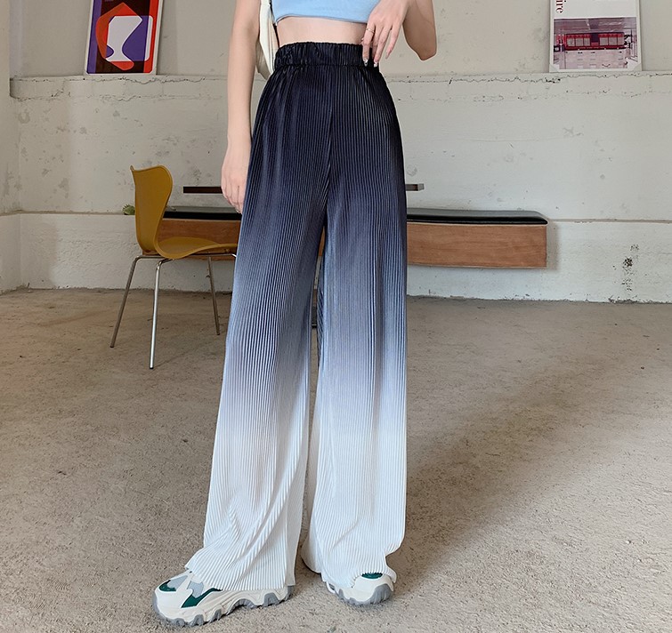 グラデーションパンツ2色ズボンボトムスワイドロング太い太め大きいサイズビッグゆったりゴムハイウエストリブダンス衣装ヒップホップHIPHOPレディースガールズストリートゴムハイウエス韓国おしゃれ奇抜派手