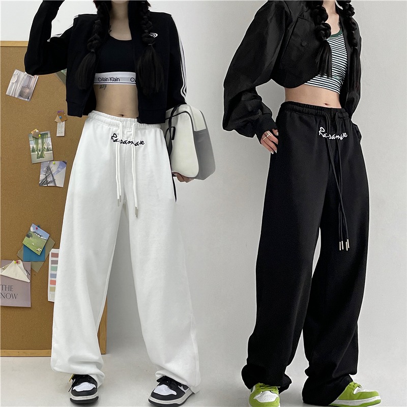 星柄パンツ2色ズボンボトムスジャージスウェット下ゴムロングワイド太い大きいサイズビッグゆったり黒ブラックブラウンロゴスタージョガーパンツ絞りダンス衣装ヒップホップレディースメンズガールズ奇