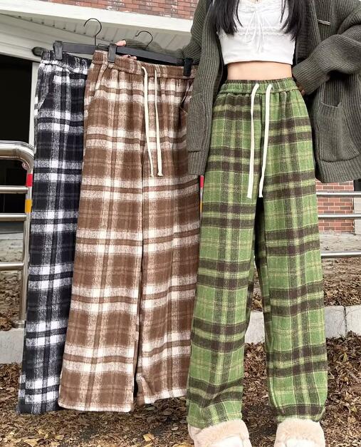 チェック柄パンツズボンボトムススウェット ロングワイド太い太め大きいサイズビッグゆったりハイウエストポケットダンス衣装ヒップホップレディースガールズ個性的奇抜