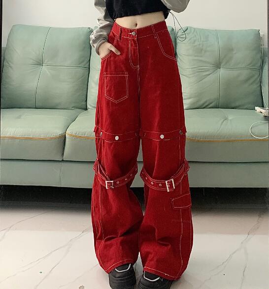 ♪-展開♪カーゴパンツジーンズジーパン パンツズボンボトムスポケットブラック黒デニムダンス衣装ヒップホップレディースメンズガールズストリート大きいサイズかっこいい個性的韓国ファッショ