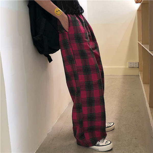チェックパンツズボンボトムスゴムロングストレートワイドダンス衣装ヒップホップレディースメンズガールズストリートカラフル奇抜個性的派手ピンクグリーンビビットカラー
