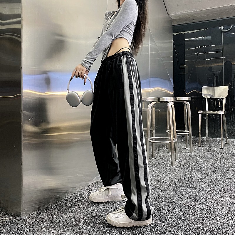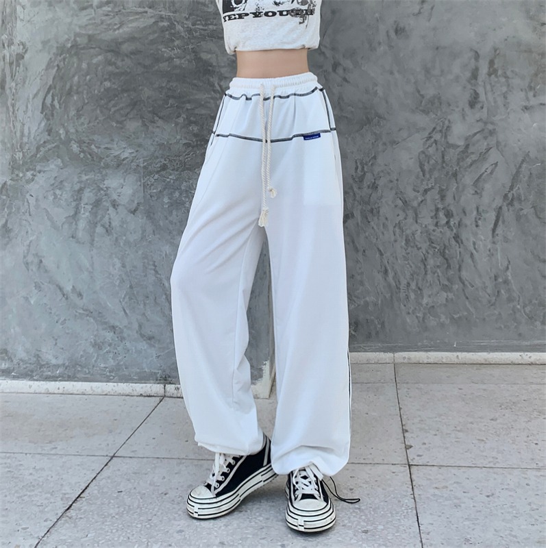 ラインパンツズボンボトムススウェット ロングワイド太い太め大きいサイズビッグジャージ 絞りゆったりハイウエストポケットダンス衣装ヒップホップHIPHOPレディースメンズガールズ個性的奇抜かっこいい