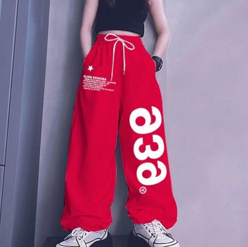 全2色 パンツ ズボン ウエストゴム ハイウエスト 切り替え 体型カバー 大きいサイズあり 原宿系ファッション 韓国風 ダンス 衣装 ダンサー ヒップホップ 個性 奇抜 かわいい 青文字