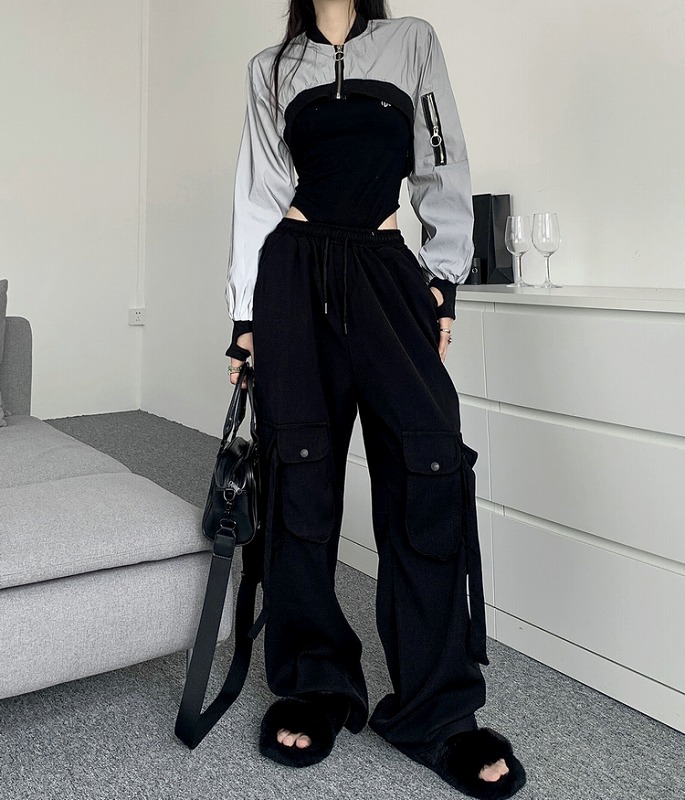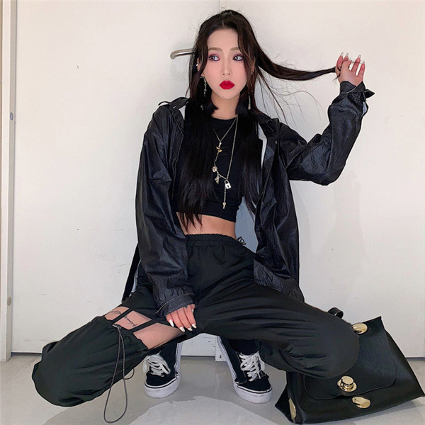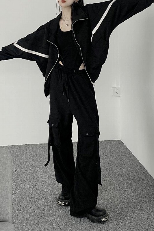肌見せジョターパンツズボンパンツボトムスジャージ黒ブラック無地シンプル絞り服下ハイウエストゴムロングストレートダンス衣装ヒップホップHIPHOPレディースメンズガールズストリート個性的大きいサイズ
